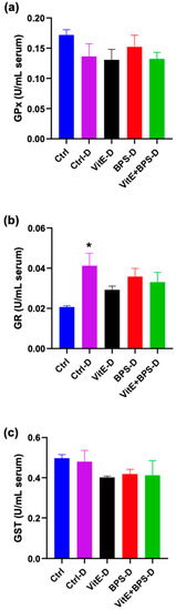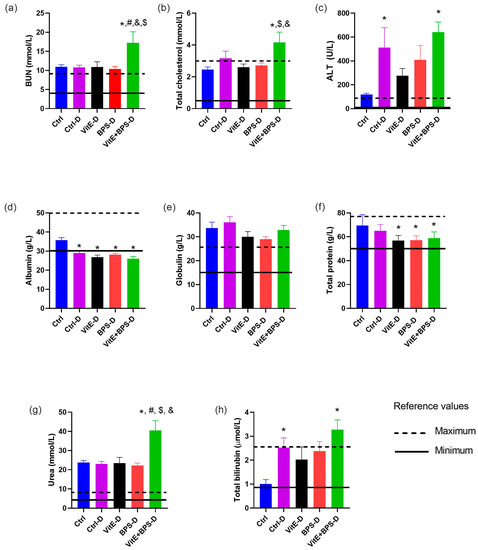 - Nimisha, B.; Sendhilvadivu, M. Vitamin E Modulates the Oxidant-Antioxidant Imbalance of BPA induced Oxidative Stress in Albino Rats. Int. J. Sci. Res. 2018, 7, 900–906. [Google Scholar]
