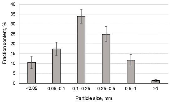 | The content of fraction < 0.01 mm, % | 10–75 | 17.6 ± 0.6 |