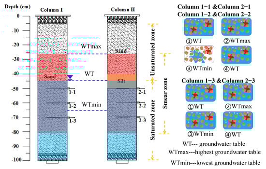 - Li, Y.; Bai, G.; Zou, X.; Qu, J.; Wang, L. Nitrogen Migration and Transformation Mechanism in the Groundwater Level Fluctuation Zone of Typical Medium. Water 2021, 13, 3626. [Google Scholar] [CrossRef]