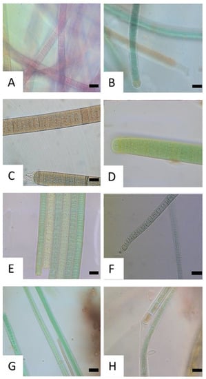 - Shalygin, S.; Shalygina, R.; Johansen, J.R.; Pietrasiak, N.; Berrendero Gómez, E.; Bohunická, M.; Mares, J.; Sheil, C.A. Cyanomargarita gen. nov. (Nostocales, Cyanobacteria): Convergent evolution resulting in a cryptic genus. J. Phycol. 2017, 53, 762–777. [Google Scholar] [CrossRef]