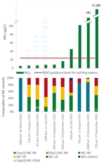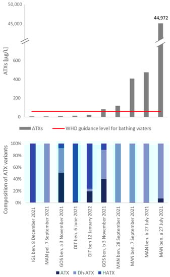 - Bauer, F.; Stix, M.; Bartha-Dima, B.; Geist, J.; Raeder, U. Spatio-Temporal Monitoring of Benthic Anatoxin-a-Producing Tychonema sp. in the River Lech, Germany. Toxins 2022, 14, 357. [Google Scholar] [CrossRef]