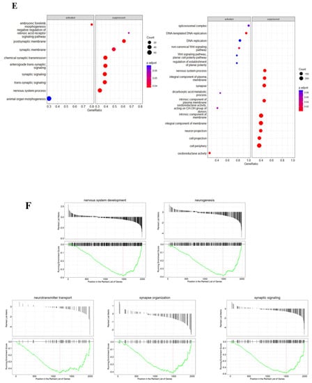 Gene set enrichment analysis (GSEA) indicates that some of the most significantly suppressed categories in arsenic-treated samples were related to synaptic signaling and nervous system process in D6 NEPs, and to synapse, neuron projection, and nervous system processes in D18 early MNs (Figure 7E). Consistently, biological processes in which DEGs presented high enrichment scores were associated with nervous system development, neurogenesis, neurotransmitter transport, synapse organization, and synaptic signaling in D18 early MNs (Figure 7F).