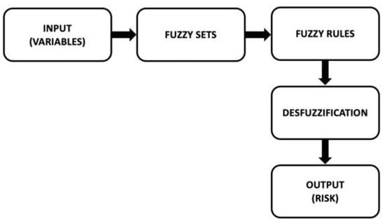Fuzzy logic is derived from traditional logic; however, it is based on the fact that while a statement does not have to be true or false, it will have to be verified to a certain degree []. Fuzzy systems describe uncertain phenomena and have been used in different applications [,,], some of which are risk-related issues [,,]. In fact, it can be said that this theory allows for the prediction of a risk situation where experimental data are difficult to collect, which is very useful.