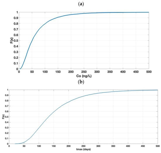 - The application of the analytical models (see Section 2.1) for the simulation of the outputs (the maximum concentrations in the river and wetland) of the dependent variables for each random value j.