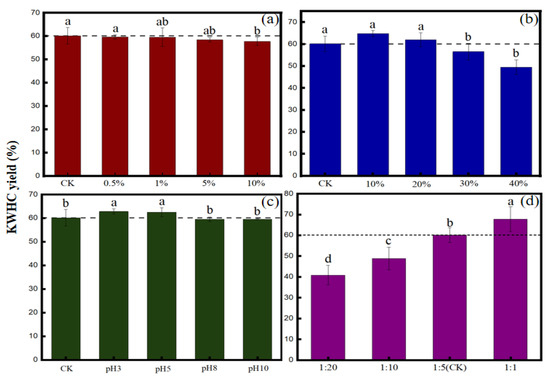 4.1. Effects of Salt, Oil, pH, and Solid-Liquid Ratio on the Productivity of KWHC