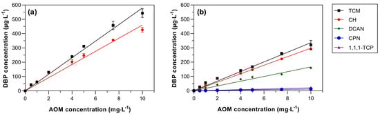 3.1. Impact of AOM Concentration on DBP Formation