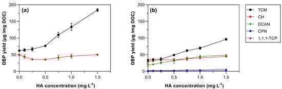 3.3. Effect of Humic Acid (HA) Concentration on DBP Formation
