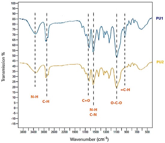 3.2.4. Properties of Polyurethane Foam before (PU1) and after (PU2) Biodegradation in Soil
