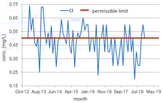 - Iordache, A.; Woinaroschy, A. Analysis of the efficiency of water treatment process with chlorine. Environ. Eng. Manag. J. 2020, 19, 1309–1313. [Google Scholar]