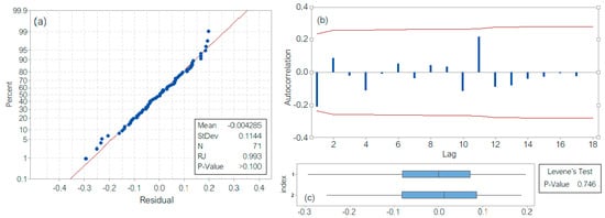 - Ljung, G.M.; Box, G.E.P. On a Measure of a Lack of Fit in Time Series Models. Biometrika 1978, 65, 297–303. [Google Scholar] [CrossRef]