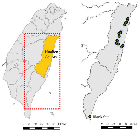- Hung, C.-C.; Huang, F.-J.; Yang, Y.-Q.; Hsieh, C.-J.; Tseng, C.-C.; Yiin, L.-M. Pesticides in indoor and outdoor residential dust: A pilot study in a rural county of Taiwan. Environ. Sci. Pollut. Res. 2018, 25, 23349–23356. [Google Scholar] [CrossRef]