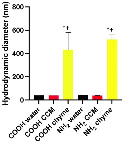 3.1. Effect of Digestion on Nanoparticle Hydrodynamic Diameter and Zeta Potential