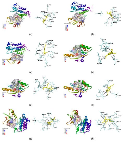 - The analysis of the binding and generation of images was carried out using Discovery Studio 2021. The distance criterion between ligands and amino acid residues was established as <3.3 Å for hydrogen bonds [] and <6.0 Å for π-π, π-alkyl and π-sigma interactions [].