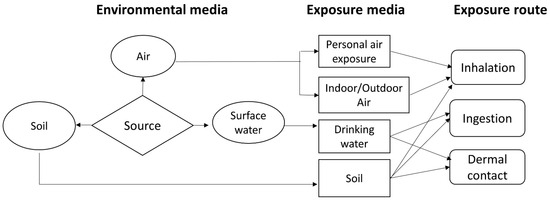 Exposure pathways in a multimedia model framework (Adapted from [41]).