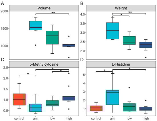 3.1. Multi-Sample Metabolomic Analysis of AML Mice and Human Population