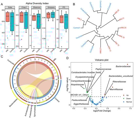 3.2.2. Stable Gut Microbiota Diversity but Decreased Firmicutes Abundance in AML