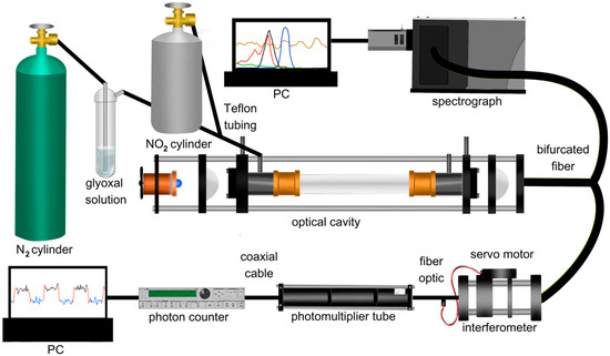 - Chandran, S.; Puthukkudy, A.; Varma, R. Dual-wavelength dual-cavity spectrometer for NO2 detection in the presence of aerosol interference. Appl. Phys. B-Lasers Opt. 2017, 123, 213. [Google Scholar] [CrossRef]