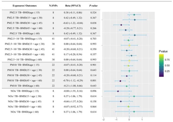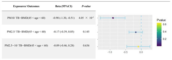3.3. Stage 2 Direct Causal Effects of Single Air Pollutants on Age-Specific TB-BMD