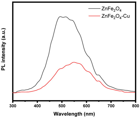 Photoluminescence (PL) spectra of ZnFe2O4 and ZnFe2O4-Cu nanocomposites.