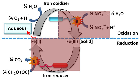 - Roden, E.E.; Sobolev, D.; Glazer, B.; Luther, G.W. Potential for microscale bacterial fe redox cycling at the aerobic-anaerobic interface. Geomicrobiol. J. 2004, 21, 379–391. [Google Scholar] [CrossRef]