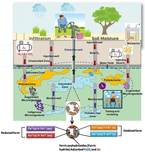 - Dilpazeer, F.; Munir, M.; Baloch, M.Y.J.; Shafiq, I.; Iqbal, J.; Saeed, M.; Abbas, M.M.; Shafique, S.; Aziz, K.H.H.; Mustafa, A. A comprehensive review of the latest advancements in controlling arsenic contaminants in groundwater. Water 2023, 15, 478. [Google Scholar] [CrossRef]