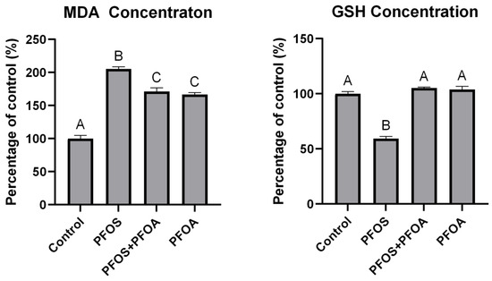 3.5. Effects of PFOS and PFOA on Oxidative Stress
