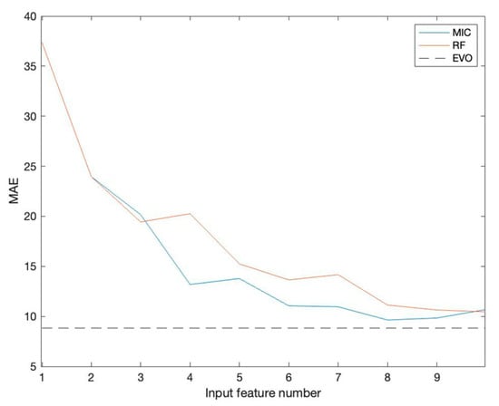 - The three feature selection methods, MIC, RF and EVO, have different results due to the differences in data characteristics and model mechanisms when evaluating the importance of features. Despite these differences, they all consider C0 and V relatively important features. In the process of uranium adsorption, with the increase in the initial concentration of uranium (C0), the number of uranium ions available for adsorption by biochar in the solution increased significantly, and the larger total pore volume (V) provided more abundant adsorption space for biochar, thus promoting the adsorption of uranium ions by biochar;