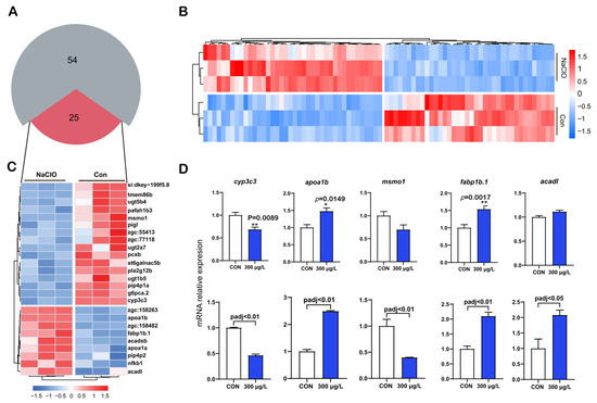 3.3. Lipidomic Analysis of Larval Zebrafish Exposed to NaClO