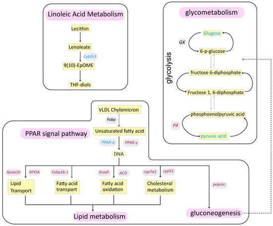 - Ning, L.J.; He, A.Y.; Lu, D.L.; Li, J.M.; Qiao, F.; Li, D.L.; Zhang, M.L.; Chen, L.Q.; Du, Z.Y. Nutritional background changes the hypolipidemic effects of fenofibrate in Nile tilapia (Oreochromis niloticus). Sci. Rep. 2017, 7, 41706. [Google Scholar] [CrossRef]