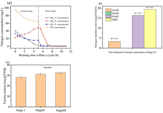 - The salt tolerance of activated sludge was related to the increase in the content of ectoine in microbial cells. Under high-salinity conditions, the denitrification process was significant, while the nitrification process was weak, and various nitrogen metabolic processes occur within the system.