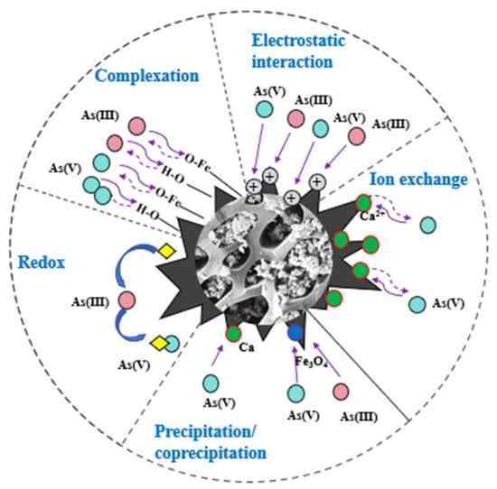 - Xu, L.; Shu, Z.; Feng, L.; Zhou, J.; Li, T.; Zhao, Z.; Wang, W. Fresh biomass derived biochar with high-load zero-valent iron prepared in one step for efficient arsenic removal. J. Clean. Prod. 2022, 352, 131616. [Google Scholar] [CrossRef]