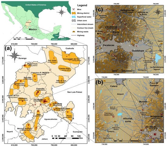 - Servicio Geológico Mexicano (SGM). Panorama Minero del Estado de Zacatecas. Serie “Panorama Minero de los Estados”. Eds.; Dirección de Investigación y Desarrollo del Servicio Geológico Mexicano y Secretaria de Economía: C.P. 42083, Pachuca, Hgo, México. 2021. Available online: https://landmatrix.org/media/uploads/sgmgobmxpdfszacatecaspdf.pdf, (accessed on 10 February 2024).