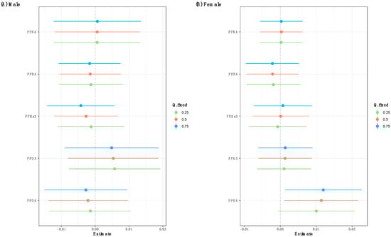 3.3.1. Sex-Specific Analysis of PFAS Mixture and Psoriasis Using Quantile G-Computation