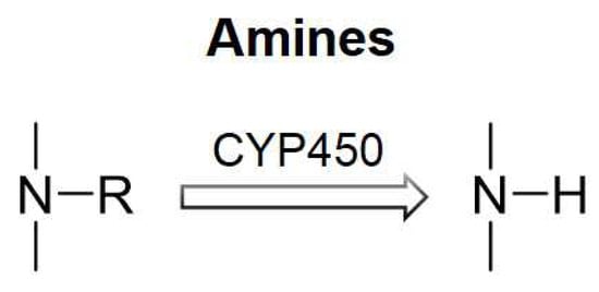 The N-dealkylation of amine contaminants mediated by cytochrome P450 enzymes.