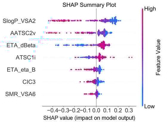 Specifically, ATSCli and AATSC2v both belong to autocorrelation descriptors; they reveal the electronic distribution and volume structure inside the molecule from different perspectives. ETA_eta_B and ETA_dBeta belong to the extended topological chemical atomic descriptor and characterize the degree of molecular branching and local electronic environment differences from different perspectives. CIC3 reflects the strength of interactions between charge centers within a molecule. SMR_VSA6 and SlogP_VSA2 belong to MoeType molecular descriptors, representing the character of molecular charge distribution and hydrophobicity [].