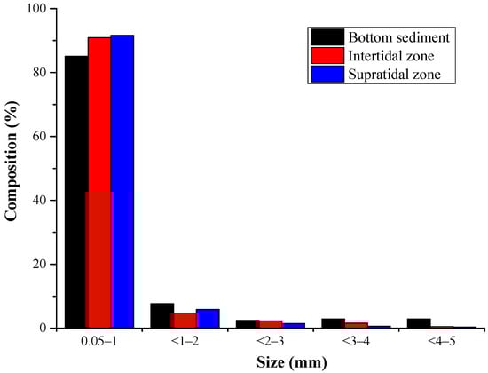 - Zhao, X.Y.; Xiong, K.X.; Zhou, Q.; Tu, C.; Li, L.Z.; Luo, Y.M. Compositions and sources of plastic debris and microplastics in different sizes from the Sanggou bay beaches, Yellow Sea, China. Mar. Environ. Sci. 2020, 39, 529–536. [Google Scholar]