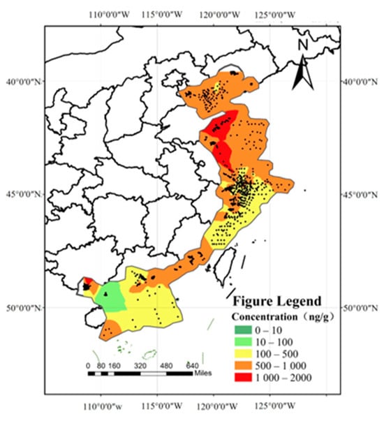 Concentration gradient map of pesticide pollutants in China’s coastal waters.
