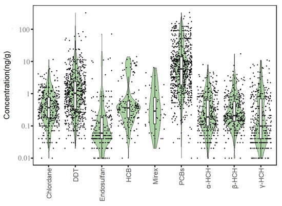 Persistent organic pollutants (POPs) have characteristics such as biological toxicity [1,2,3], environmental persistence [4,5], and bioaccumulation [6,7]. They are widespread in the environment and pose great risks to human health and the environment. The Chinese government has attached great importance to the control of pollutants in recent years. In December 2022, the Chinese government released the “List of New Pollutants for Key Control (2023 Edition)”. The list contains 14 chlorinated hydrocarbons including chlorinated pesticides: Chlordane, Mirex, DDTs, HCH isomers, Endosulfans, HCB, and PCBs.