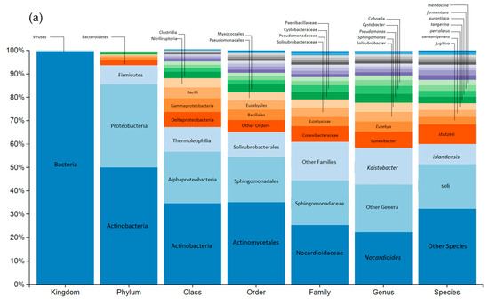- Janssen, P.H. Identifying the dominant soil bacterial taxa in libraries of 16S rRNA and 16S rRNA genes. Appl. Environ. Microbiol. 2006, 72, 1719–1728. [Google Scholar] [CrossRef]