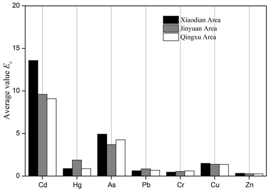Average single ecological risk index in different areas.