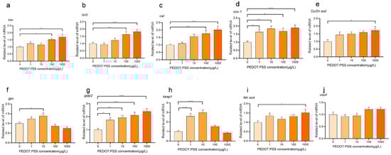 3.2. Effects of PEDOT:PSS on Oxidative Stress-Related Gene Expression