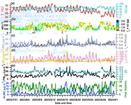 - Li, X.; Song, S.; Zhou, W.; Hao, J.; Worsnop, D.R.; Jiang, J. Interactions between Aerosol Organic Components and Liquid Water Content during Haze Episodes in Beijing. Atmos. Chem. Phys. 2019, 19, 12163–12174. [Google Scholar] [CrossRef]
