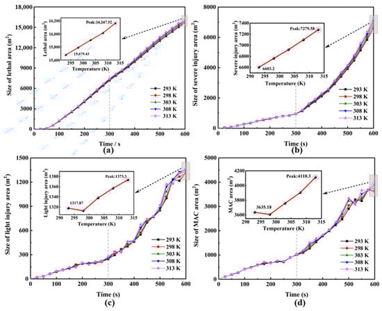 | Environmental Temperature /K | Size of Lethal Area/m2 | Size of Severe Injury Area/m2 | Size of Light Injury Area/m2 | Size of MAC Area/m2 | Size of Total Hazardous Area/m2 |