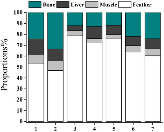 - Peterson, S.H.; Ackerman, J.T.; Toney, M.; Herzog, M.P. Mercury Concentrations Vary within and among Individual Bird Feathers: A Critical Evaluation and Guidelines for Feather Use in Mercury Monitoring Programs. Environ. Toxicol. Chem. 2019, 38, 1164–1187. [Google Scholar] [CrossRef]