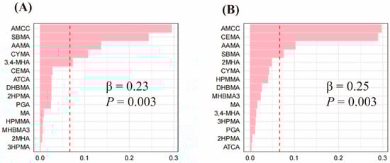 | 2HPMA | 1.22 (1.01, 1.48) | 0.037 * | 0.99 (0.77, 1.27) | 0.951 | |