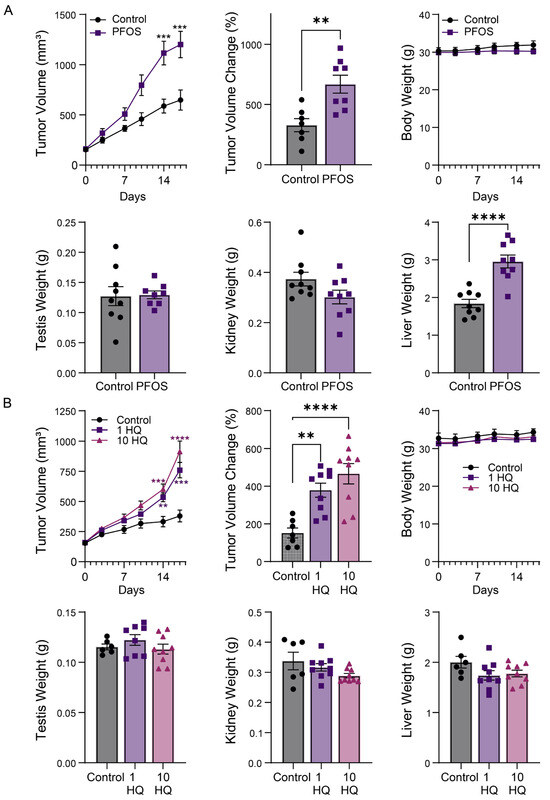 3.1. PFOS and HQ-115 Promote Tumor Cell Growth In Vivo