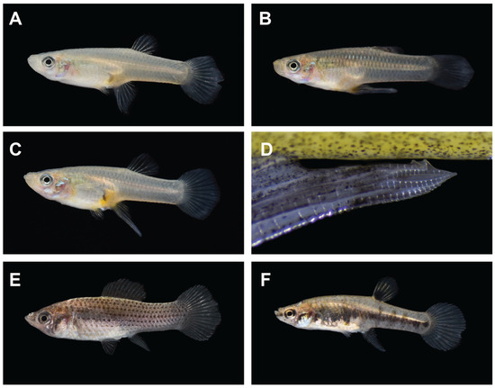 - Rosen, D.E.; Bailey, R.M. The Poeciliid Fishes (Cyprinodontiformes): Their Structure, Zoogeography, and Systematics. Bull. AMNH 1963, 126, 176. [Google Scholar]