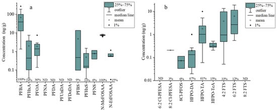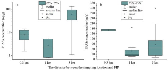 - Jia, X.; Li, X.; Zhou, L.; Hui, Y.; Li, W.; Cai, Y.; Shi, Y. Variations of the Level, Profile, and Distribution of PFAS around POSF Manufacturing Facilities in China: An Overlooked Source of PFCA. Environ. Sci. Technol. 2023, 57, 5264–5274. [Google Scholar] [CrossRef]