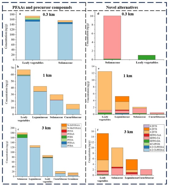 - Che, J.; Xu, C.; Song, X.; Ding, X.; Ali, M.; Chen, H. Bioaccumulation of PFASs in cabbage collected near a landfill site in China: Laboratory and field investigations. Sci. Total Environ. 2024, 906, 167578. [Google Scholar] [CrossRef] [PubMed]