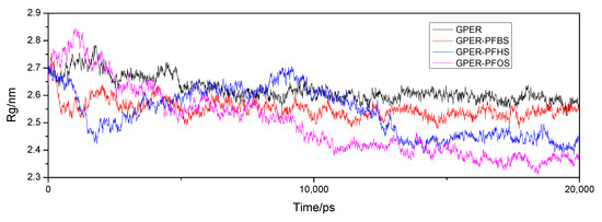 The Rg of free GPER and GPER–PFSA complexes from 20 ns of MD simulations.